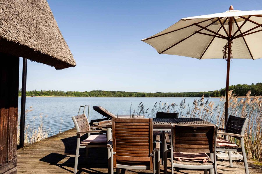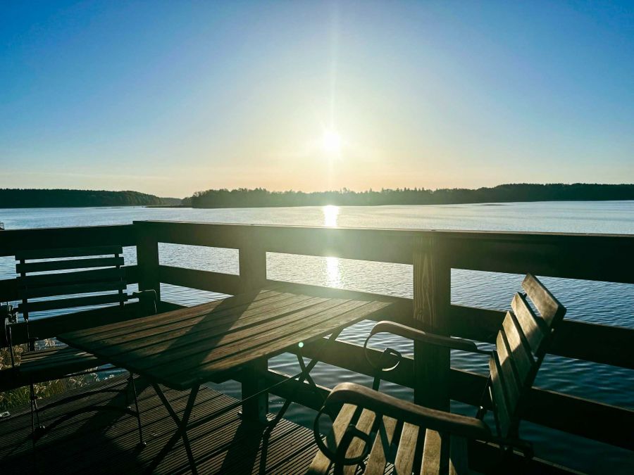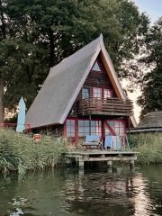 Das wunderschöne und idyllisch gelegene reetgedeckte Bootshaus besitzt 3 Räume und eine Küche, einen Balkon zur Seeseite und eine Seeterrasse mit Badeleiter. Das Bootshaus ist auf Pfählen in den See gebaut und befindet sich fest über dem Wasser. Das Uferland und eine kleine Wiese können mitgenutzt werden.
