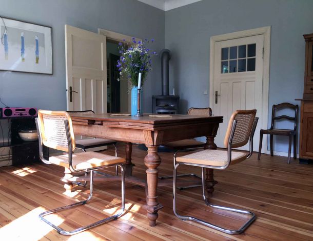 Genießen Sie Ihren Aufenthalt in einer Villa von 1904. Sie liegt nahe dem Kleinen Pälitzsee, in der Nähe von Rheinsberg, in Kleinzerlang.