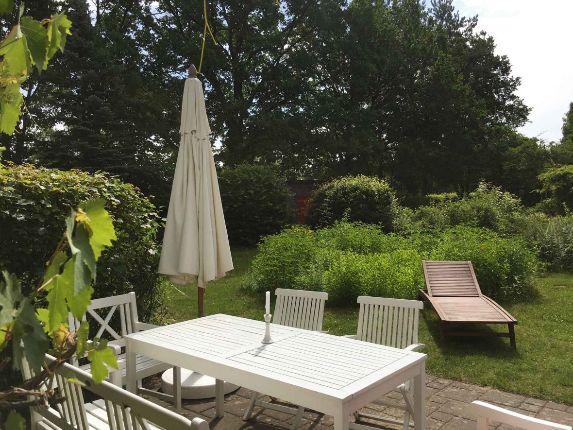 - Natur pur: Ein kleines Waldstück grenzt an den Garten. Es führt bis zu einem Kanal, wo ein eigener Steg mit Kahn für Sie bereitsteht.
